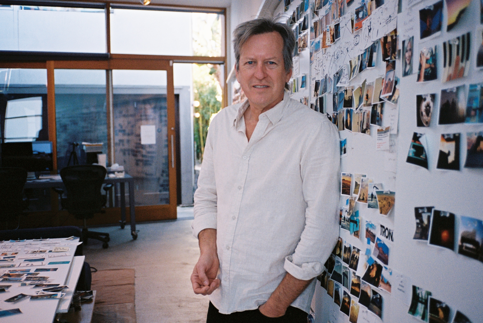 Just over a year ago, gallerist Lucca Hue-Williams and A Rabbit’s Foot Creative Director Fatima Khan sat down with artist Doug Aitken in this Los Angeles studio, when Lightscape, Aitken’s first feature film, was still in its embryonic phase—a constellation of notes, storyboards, and sonic fragments pinned to the walls of his studio.