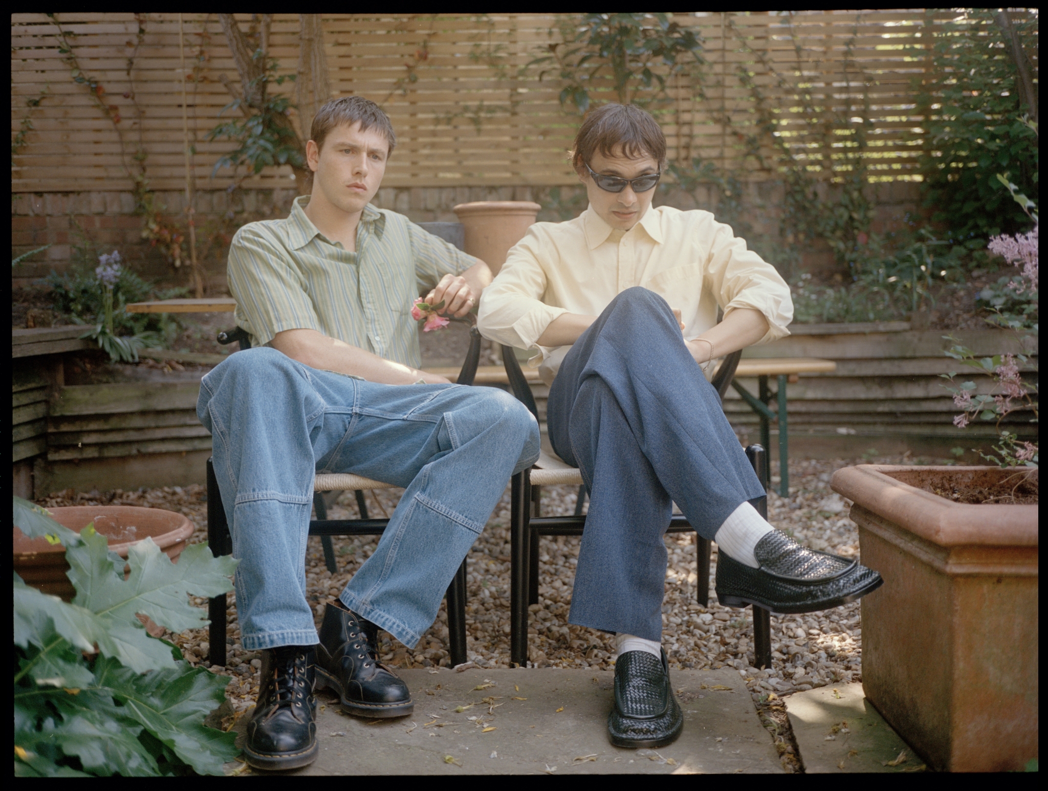 His directorial debut, Urchin is a film that is close to Dickinson’s heart—geographically, spiritually, creatively. Dickinson, who has built his acting career largely by playing Americans—Coney Island kid in Beach Rats (2017), professional wrestler in The Iron Claw (2023), tech intern in Babygirl (2024)—was born in east London and Urchin is filmed in its environs, from the streets of Dalston and the wasteland beneath the Dartford Crossing to City View Lodge, an almost-Lynchian hotel where Mike finds a job after his stint in prison. Dickinson worked at the hotel himself when he was first auditioning for roles and trying to make it as an actor. “I’ve done a lot of those different jobs, and I wanted to anchor it in things that I knew,” says Dickinson, speaking from the garden of a house in Hackney, where we are shooting him with Dillane. It was the pair’s first interview and shoot to promote the film, and took place on a hot afternoon a few weeks before the 2025 Cannes Film Festival, where it premièred to much acclaim. The jury of Un Certain Regard, in which Urchin competed, awarded its lead actor the best actor prize.
