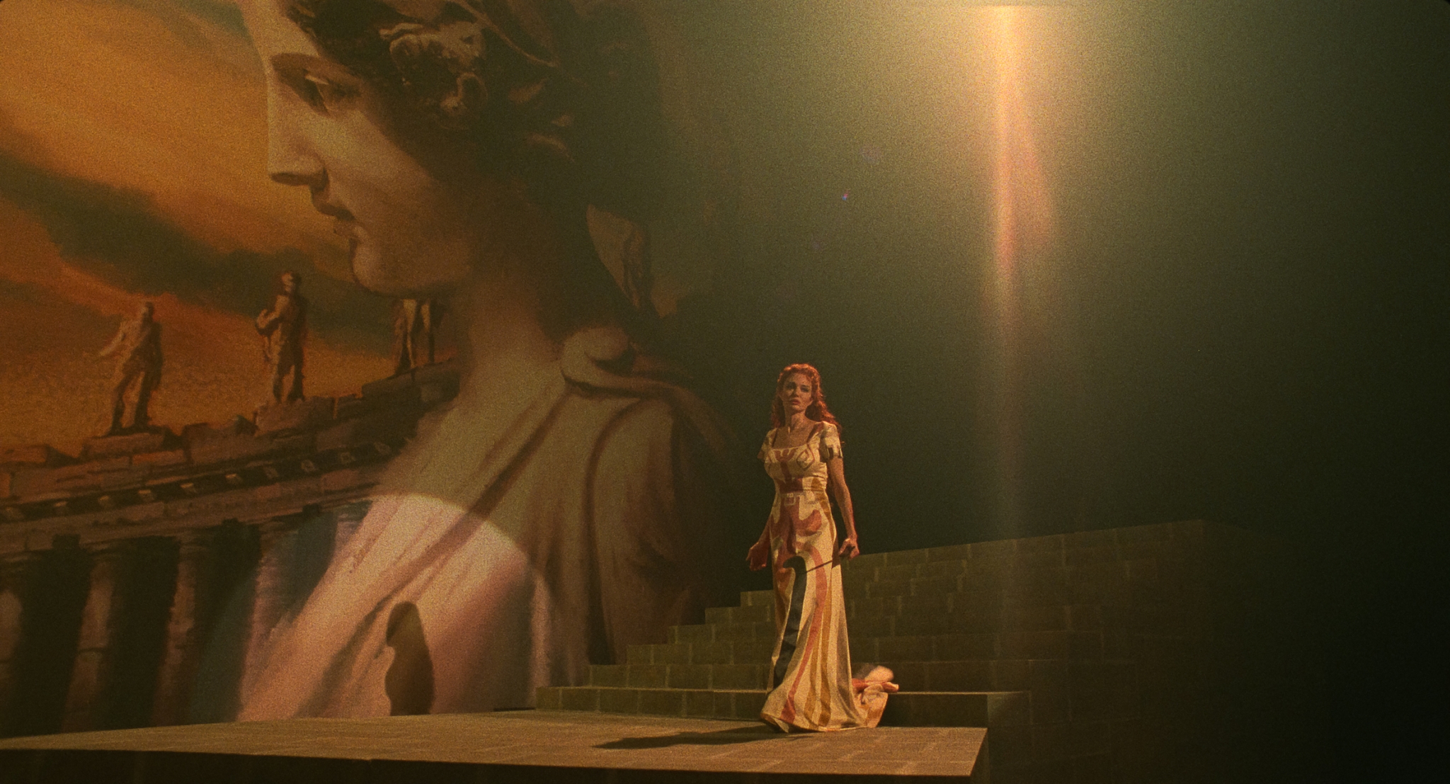 Art can be a healing outlet for many people, but for performers it often tugs on unhealed wounds, Maria shows us the heartbreak of a woman who becomes the most famous soprano in the world, but still wrestles with the self-hatred her mother laced into her. Puccini’s ‘Vissi D’arte’ (I lived for my art, I lived for love…why, why, o Lord, why do you reward me thus?) was the obvious and perfect swan song. People listen awestruck from the window as she sings herself to death. With what she has left of her voice she pours the aria from her, knowing it will kill her, but much like Cio Cio-san, Wally and Tosca, on her own terms.